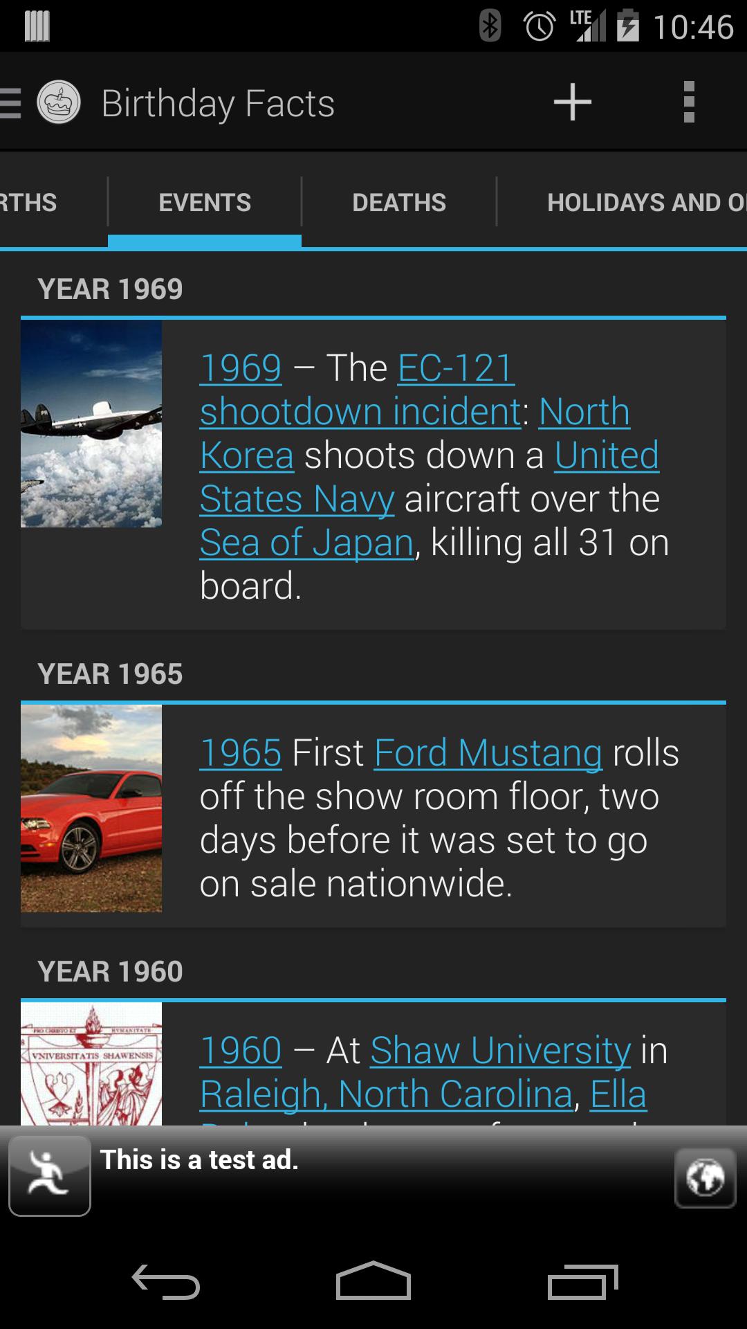 ✔ You get a list of all the famous events that took place in history on your birthday (month and day), and there are direct links to wikipedia so that you can find out more about these events and impress your friends