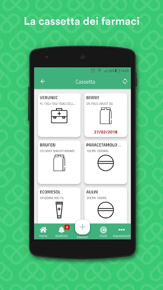 - Product Box: allows you to monitor stocks and deadlines of drugs, parapharmaceuticals and medical devices in your home.