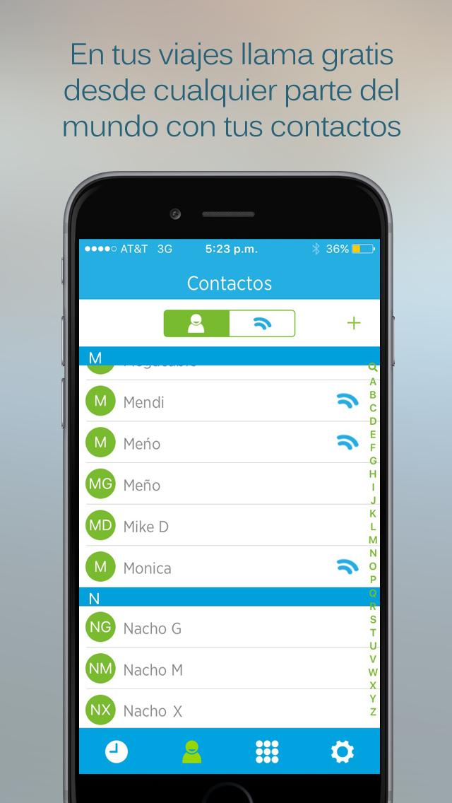 Call any telephone to 43 countries, including Mexico, the US and Canada, using Wi-Fi or your data plan. *