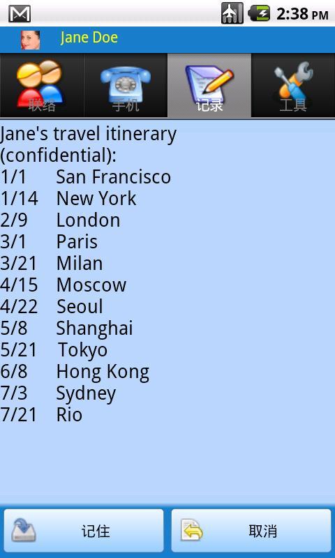 * Tabbed Browsing – view phonebook/contact list, contact info and notes on different tabs.