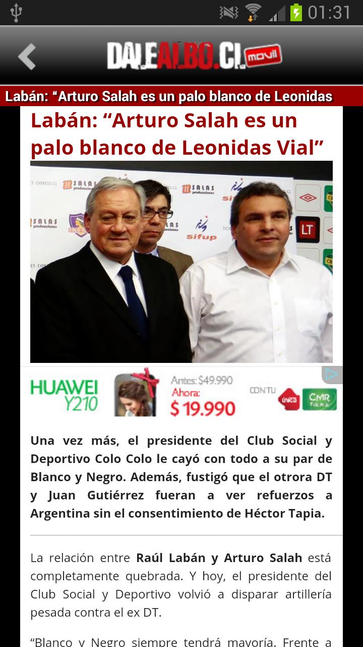 Now all the information on your site www. DaleAlbo .cl, reaches your Android smarphone, with the new DaleAlbo application, you will have all the information in your hands about the most popular team in Chile and one of the greats of the American continent.