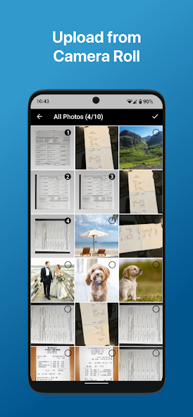 To submit a claim, select “Upload” from the main screen then select the type of claim to upload. You can then photograph your documentation, upload up to 10 images from your camera roll, and add claim details.