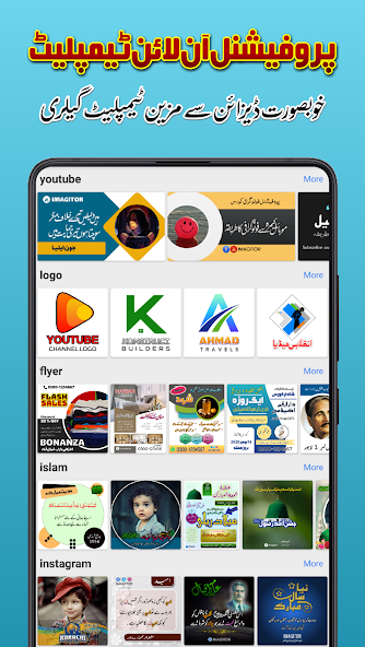 - Logo Maker: Design business logos with ready-to-use Urdu logo templates.