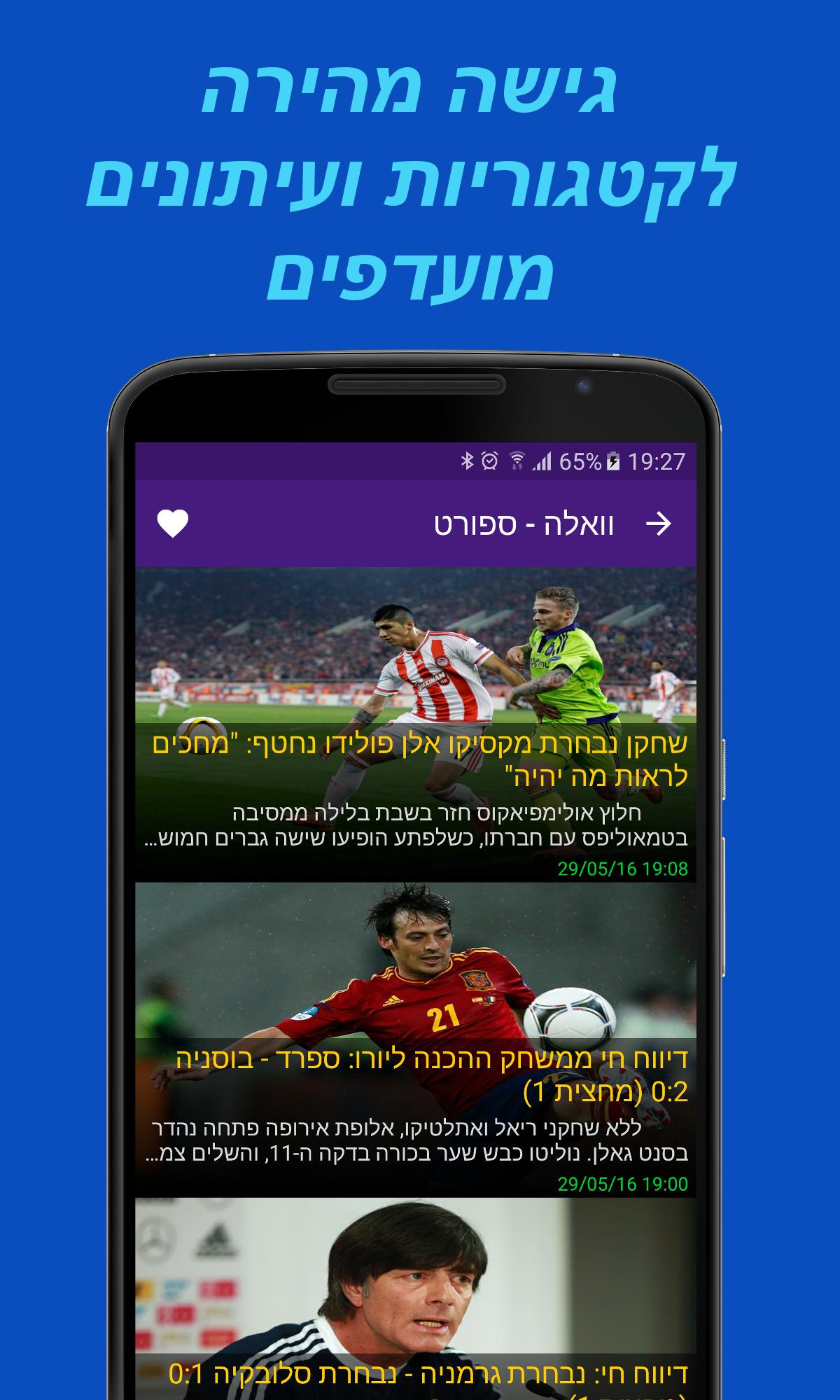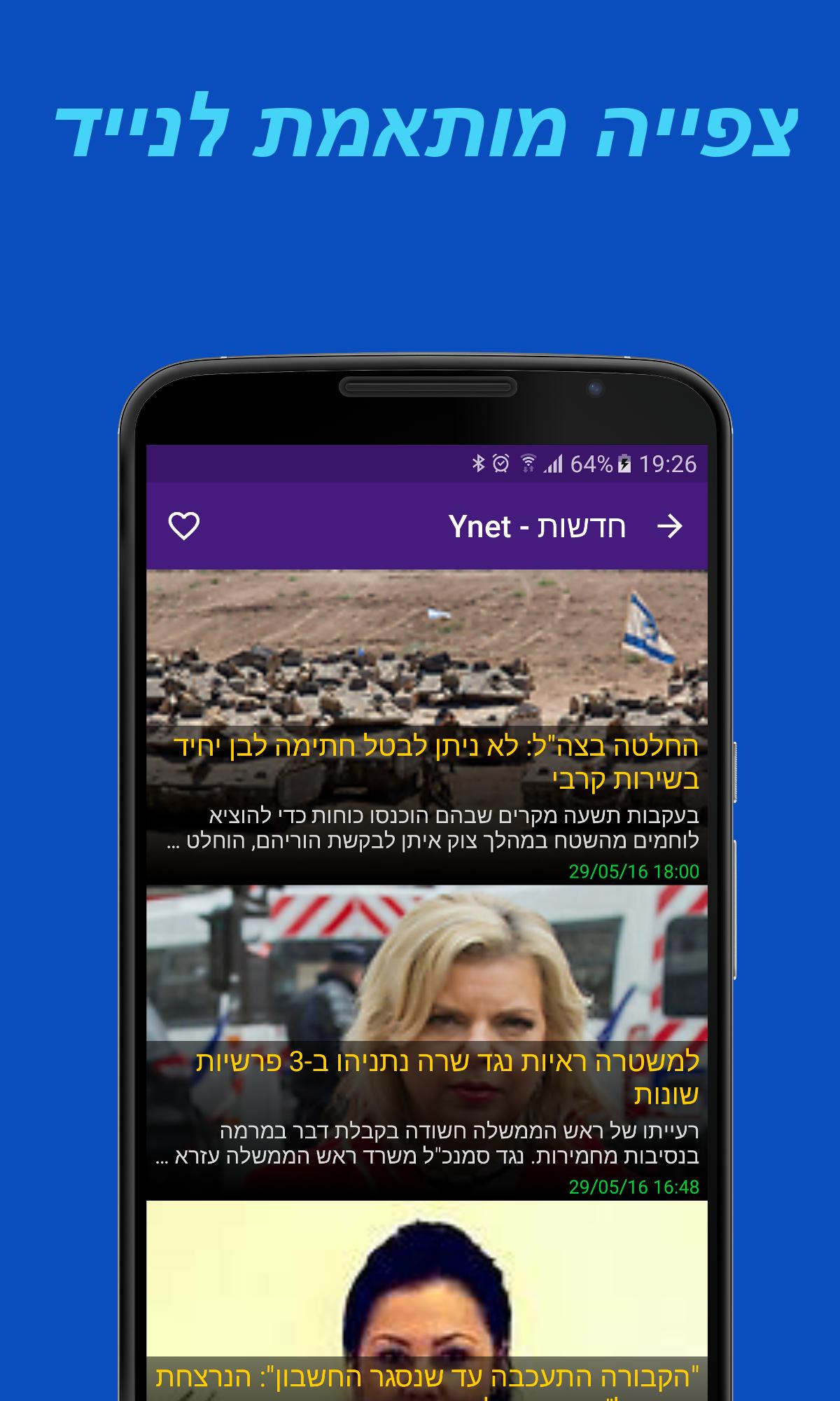 Displaying news from all popular Israeli news sites: ynet, calcalist, globes, walla, nrg, themarker, haaretz, one, news1, kol-israel and sport5, channel7, israel hayom