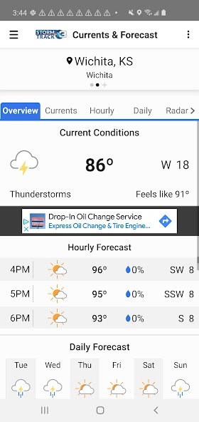 Never let the weather catch you by surprise again. The trusted weather experts at Storm Tracker 3 deliver Kansas' most accurate hour-by-hour forecast for the next day and for the week ahead. Unlike other weather apps, you'll get a local forecast that is customized for you. Download the Storm Tracker 3 app for fast, accurate local and national weather at your fingertips. With its personal alert notifications, you'll know when significant weather is heading your way and when to take cover. And when you are traveling, use Storm Tracker 3 to get real-time weather forecasts, interactive radar and current conditions for anywhere in the U.S. The Storm Tracker 3 app utilizes the most advanced radar maps, weather and digital technology available. With its easy to use interactive radar, you can take control and see where the storm is now and where it is tracking. Then, set customized alerts to keep you and your family informed and safe. Features: - Live interactive radar with many layering options lets you track the storms around you - Alerts for severe weather go to your home screen and cue an audio alert - The most accurate hour-by-hour forecast for the next day and week ahead for Kansas - The latest video forecast from Storm Tracker 3 - Current weather conditions for Wichita, all of Kansas, and anywhere in the United States - Share the weather conditions via text message, email, Facebook or Twitter - You can set multiple custom locations to track forecasts, alerts, radar, and more - Closings and delays for Kansas - Weather blog from Threat Tracker - Live streaming video from KSN-TV