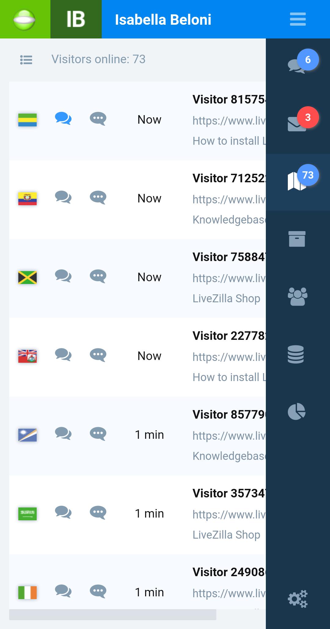 LiveZilla, the widely-used and trusted Live Help and Live Support System connects you to your website visitors. Use LiveZilla to provide Live Chats and monitor your website visitors in real-time on your Android mobile device.