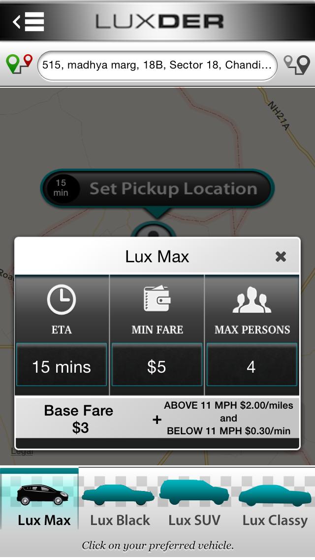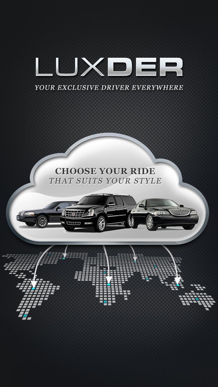 * Luxder App, a modern method to request a ride share! , We simply connect you with a driver at the tap of a button.