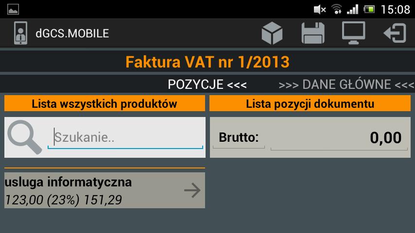 The mobile application DGCS invoice allows you to keep dictionaries: contractors, products, as well as using defined VAT rates, units, which significantly reduces the time needed to issue invoices.
