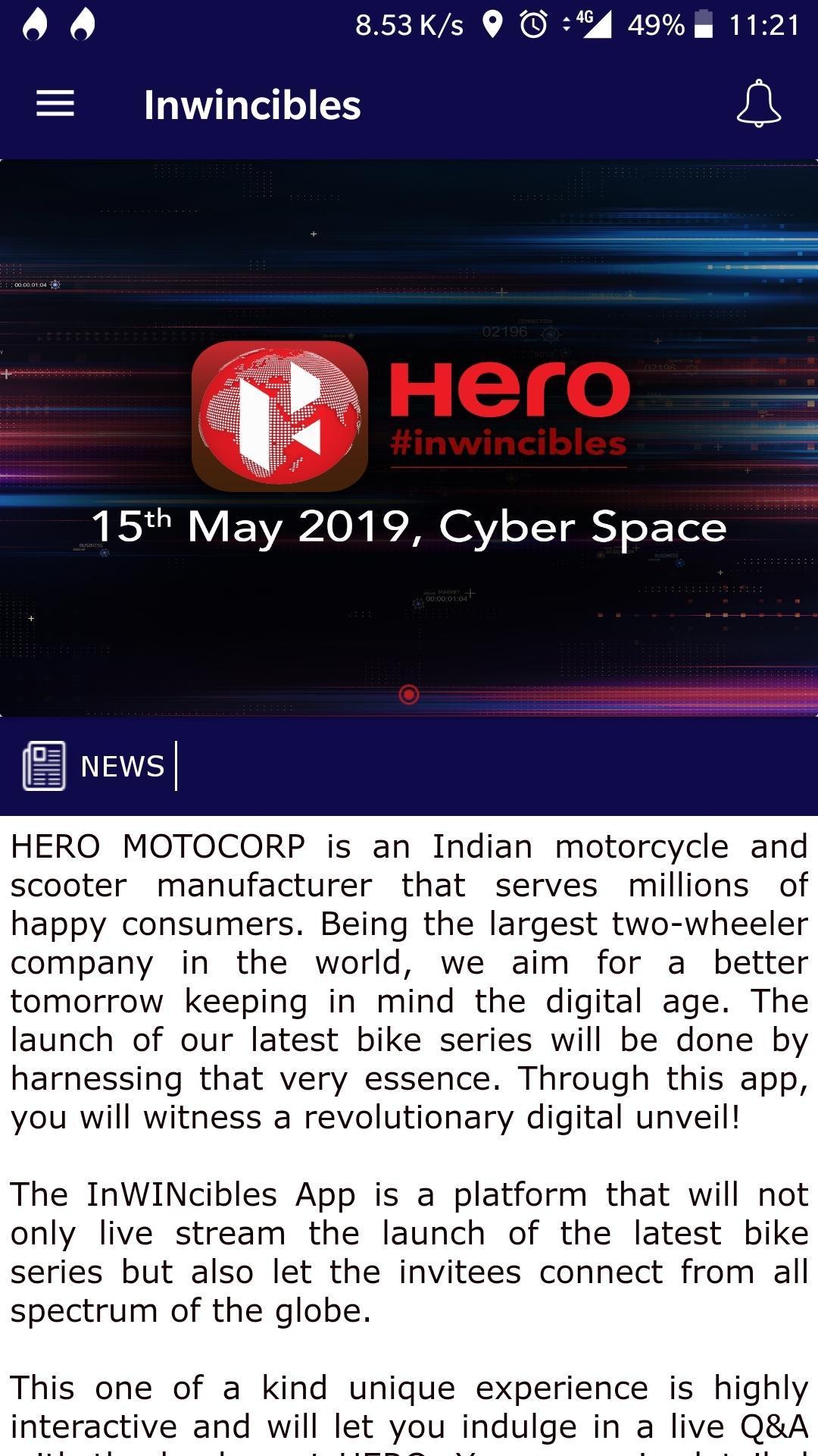 Download the app and get updates about various ongoing and upcoming events related to Hero.