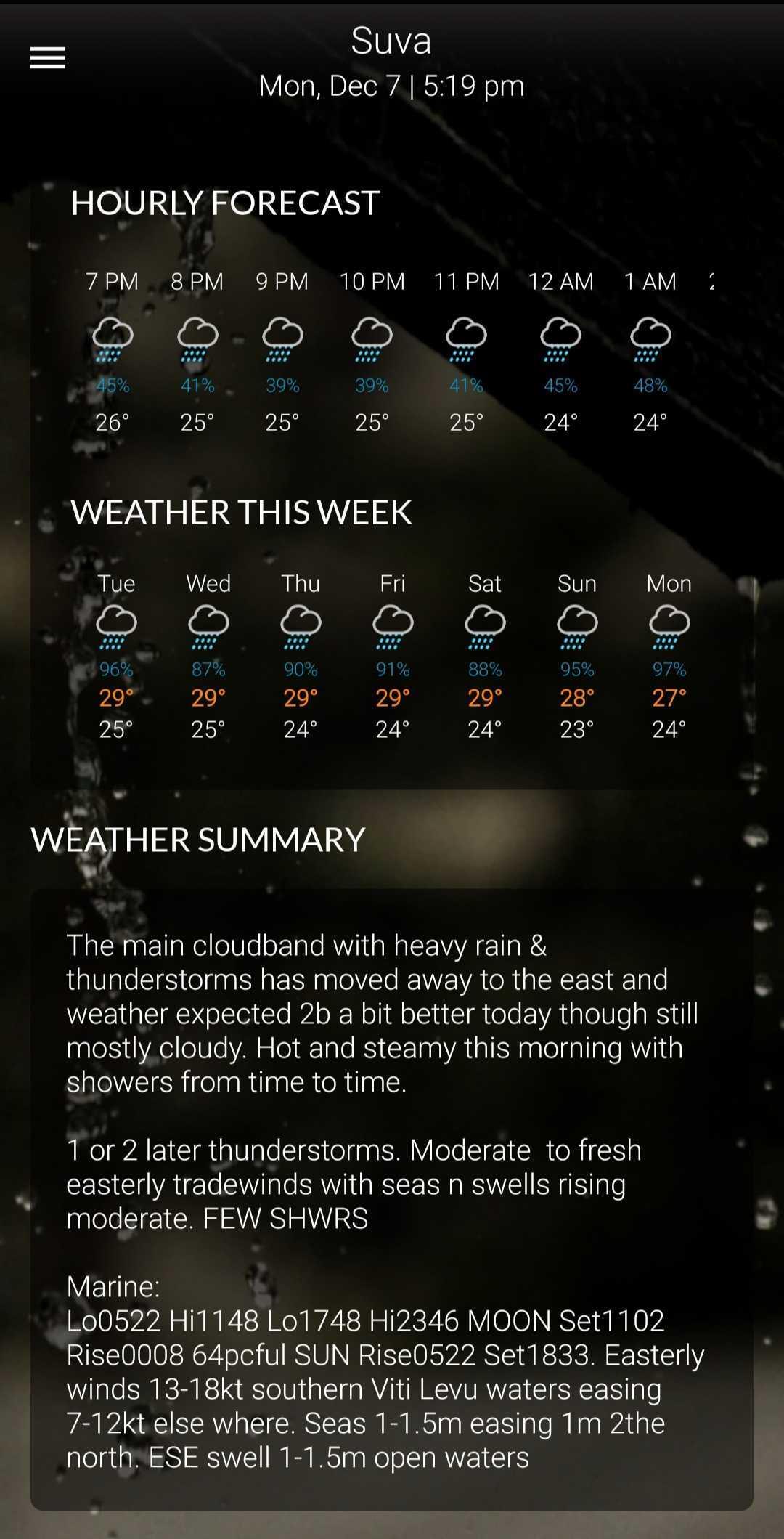 • Access a five-day weather forecast, available for main locations across Fiji Islands.