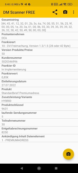 Scans The Datamatrix Code (Postmatrixcode) of the Deutsche Post.
