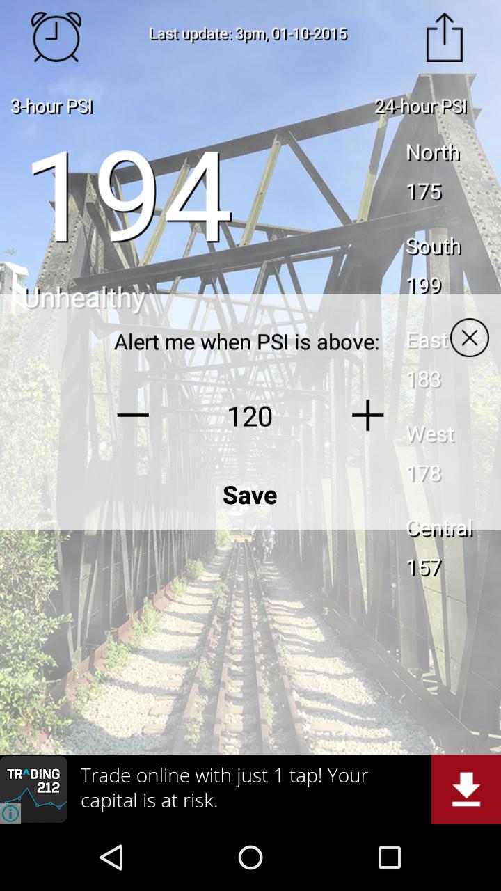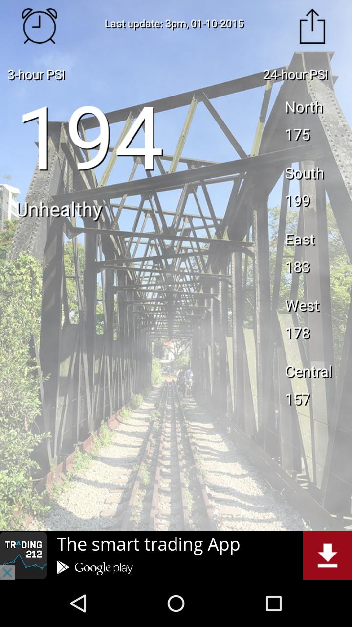 PSI@SG is a simple and useful utility app that display all the haze related information that is important to you in one glance. This app is developed (despite many other similar apps) to give you a quick understanding of the current haze situation in Singapore.