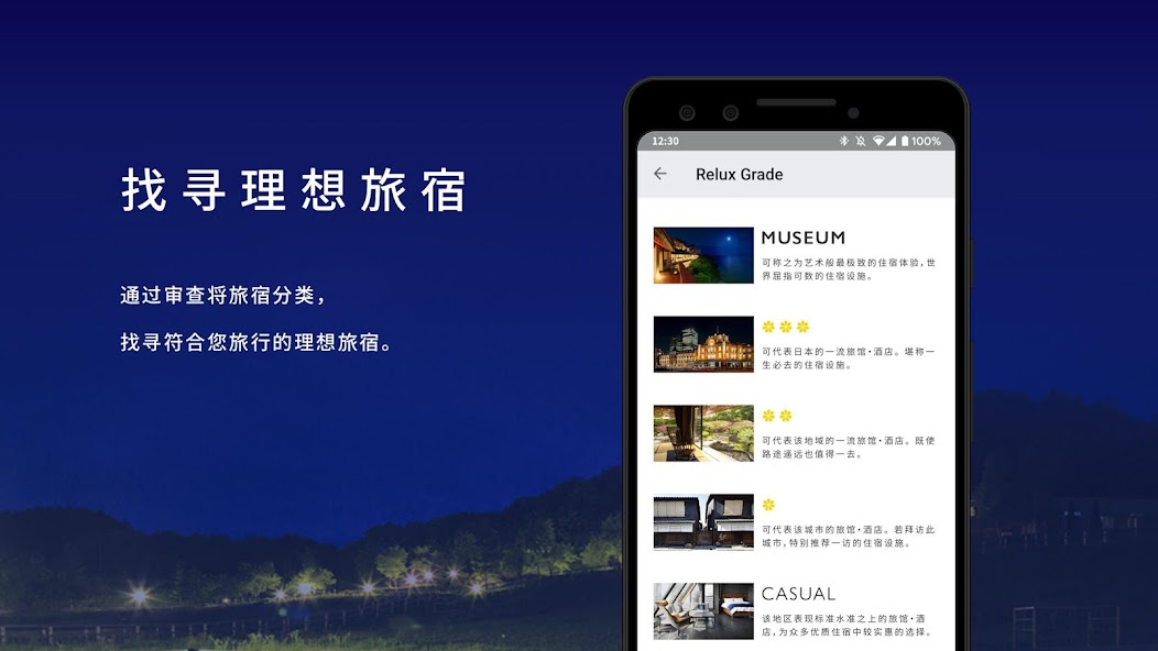 Join over 2,000,000 users and come see what Relux, *a hotel and Ryokan booking service in Japan, has to offer - all in our official Android application!