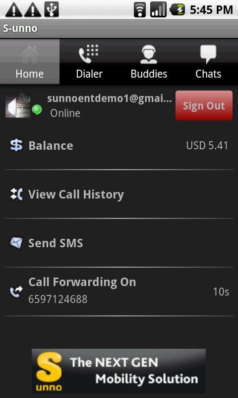 With S-unno, you can use your android phone to make phone calls to any fixed or mobile number in more than 200 countries at absolutely low rates. Rates start from as low as US 1cents/minute. S-unno uses your 3G or WiFi connection to place these calls so that you can start saving now. Not just phone calls, S-unno offers much more SMS & cross platform Instant Messaging.