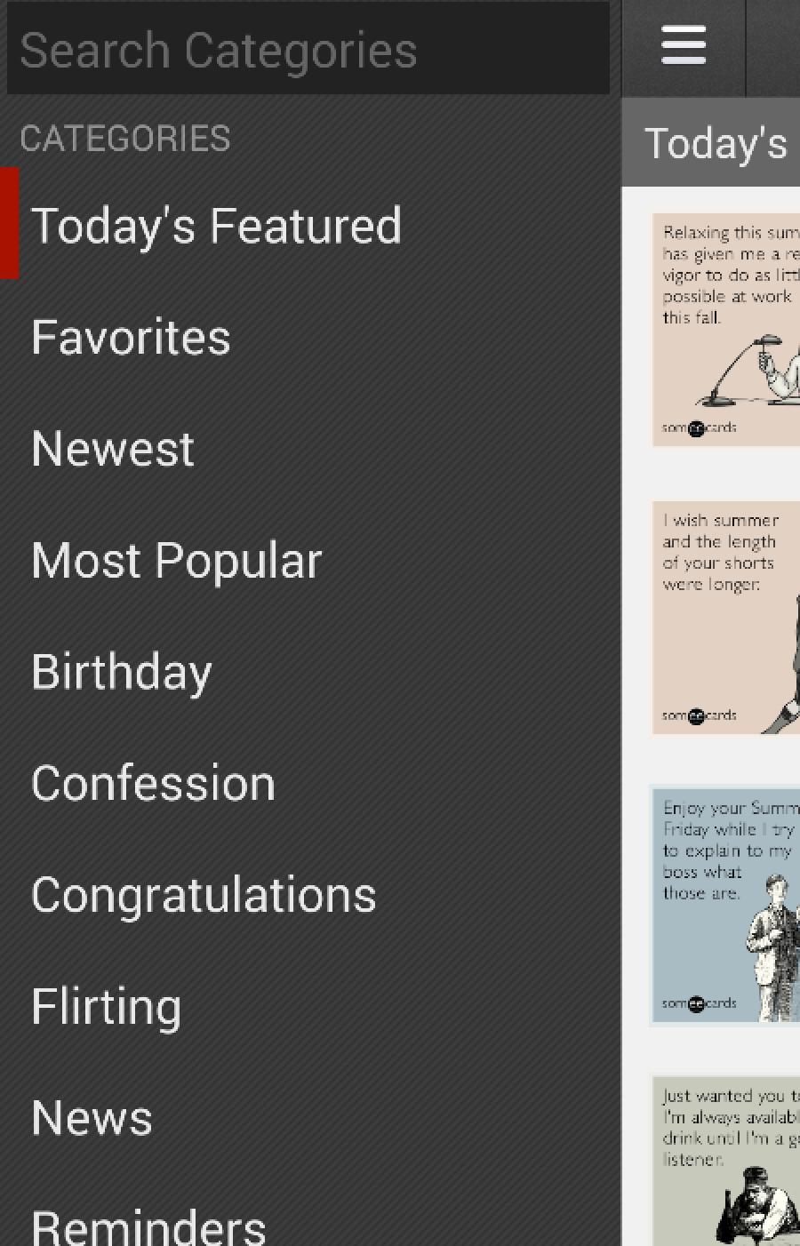 • Get topical humor right to your Android device, including cards that make fun of Android