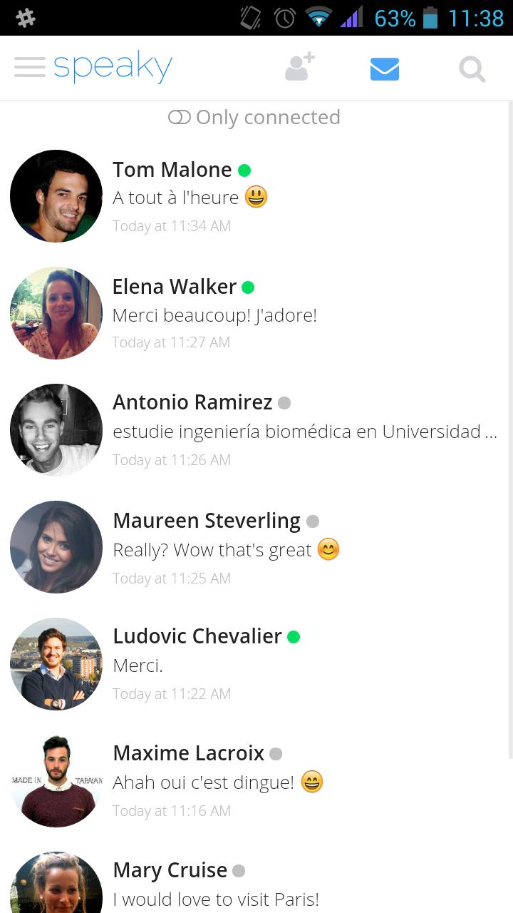With Speaky you create your own language-learning network! All the people you meet will not only help you, they will become lifelong friends! Indeed, having conversations with native speakers will not only make you better in a new language, it will make you true friends all around the globe.