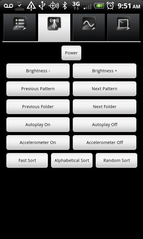 Remote interface for Bluetooth enabled SpinFX glow toys. Easily navigate patterns and tweak advanced settings