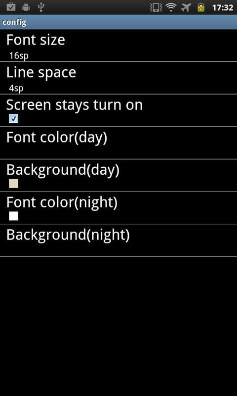 High-level configuration. You can configure the application by changing the background color or the font. Also, if you have vision problems can adjust the font size to your liking.
