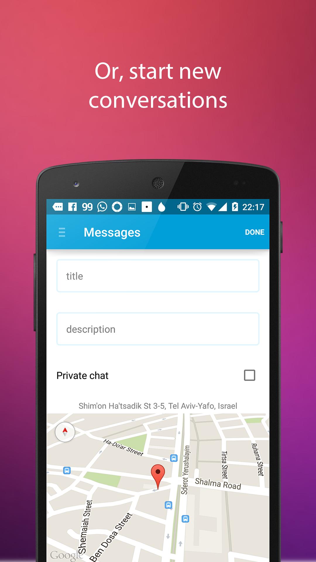 • Create location based chats