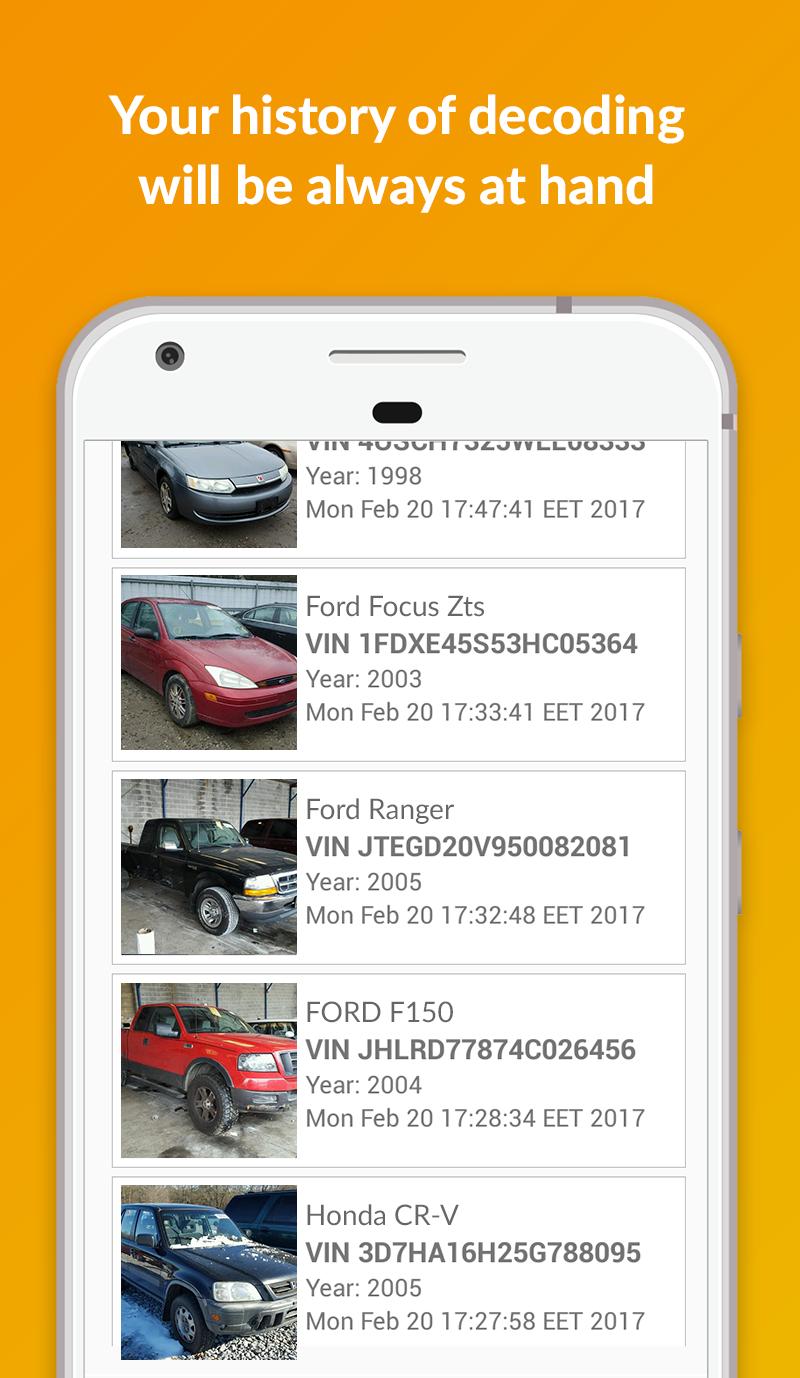 Fill in the VIN number manually or decode it's barcode with a scanner.