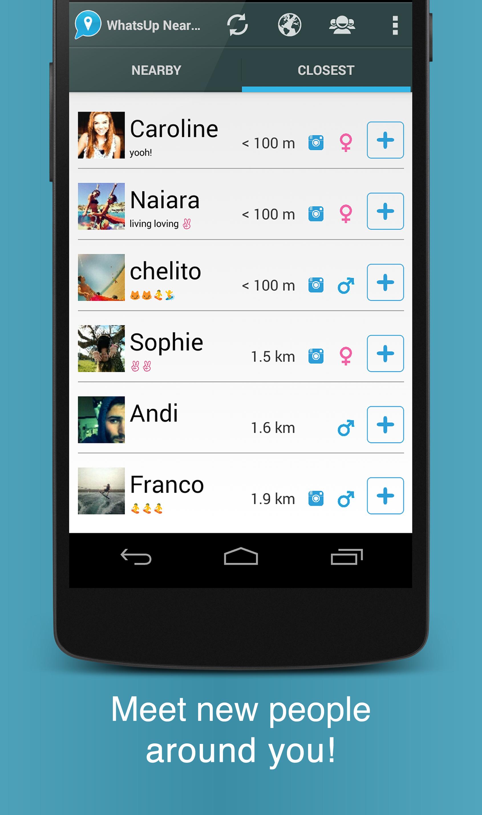 The main difference from Tinder and WeChat, is that with WhatsUp Nearby you can talk directly using your whatsapp number
