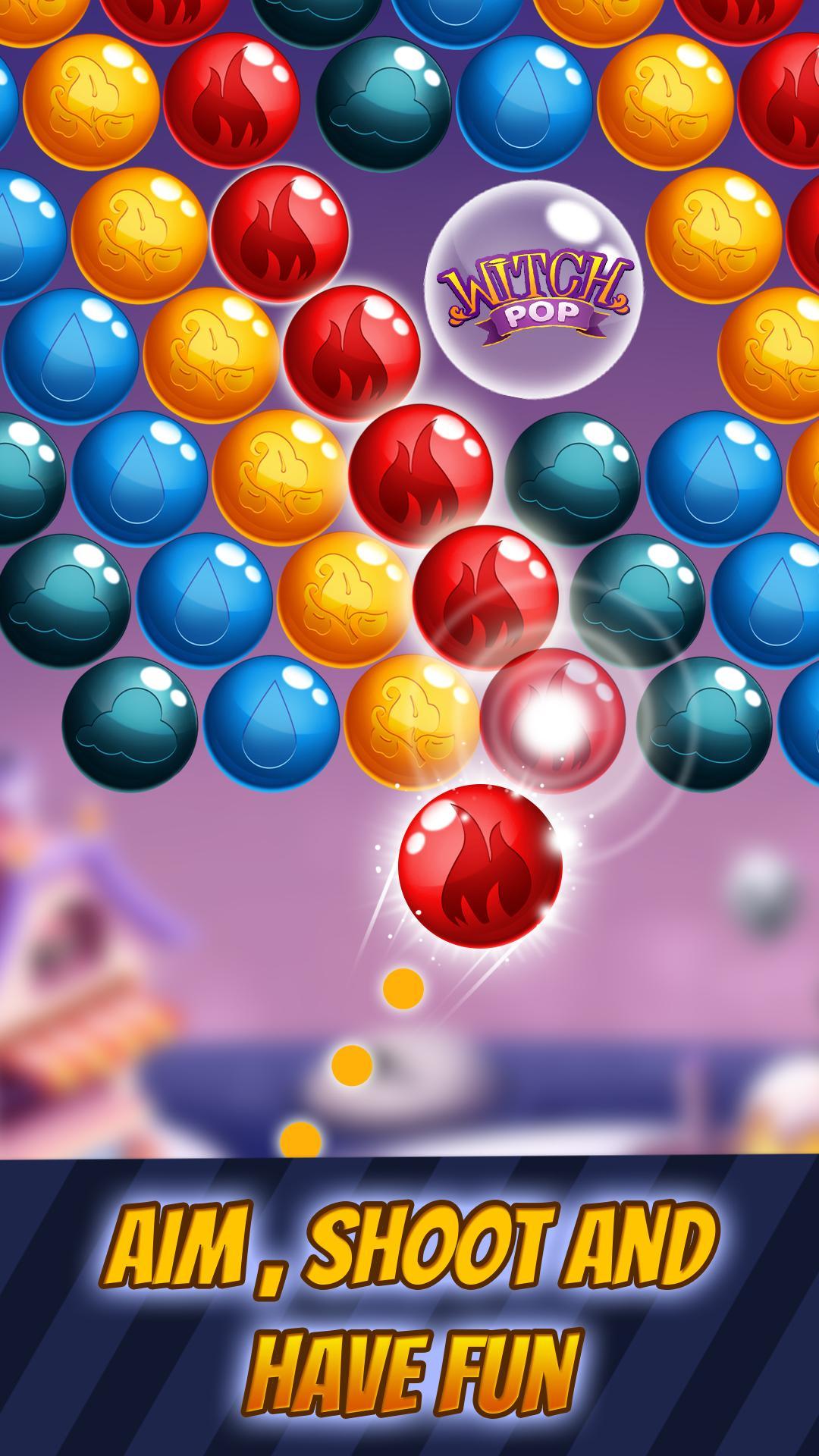 • Move your finger to the target, aim, and your witch magic will shoot the bubble.