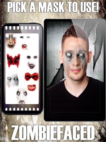 ? Seamlessly apply masks to your photos: Simply select a photo from your gallery or take a new one, and our advanced face detection technology will flawlessly apply the perfect zombie face mask to your image. Watch as your ordinary photo is instantly transformed into a nightmarish scene that will leave everyone trembling with fear.