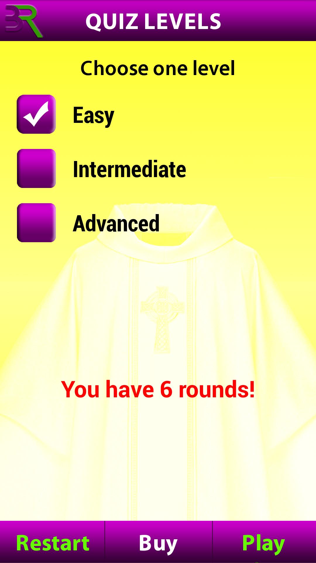 مجموعة من الأسئلة التوراتية المكشوف والمثيرة والمشتقة المصممة خصيصًا للأشخاص الذين يتوقون إلى تعلم الكتب المقدسة وأولئك الذين يستمتعون بقراءته. في التطبيق ، سيتم تقديم أسئلة للمستخدمين التي تغطي جميع كتب الكتاب المقدس في هذه الفئات الخمس ؛ الناس والأماكن والأحداث والبيانات والمتنوعة. للبدء ، حدد فئتين على الأقل ثم تابع اختيار المستوى الذي تريد تشغيله. كل جولة لديها خمسة عشر سؤالا ويمكنك لعب العديد من الجولات. في الإصدار المجاني ، يقتصر اللاعبون على المستوى "السهل". لتشغيل مستويات أخرى ، يرجى شراء الإصدار الكامل من خلال النقر على زر "شراء" في شاشة "مستويات الاختبار" ، أو بالنقر فوق "الترقية إلى الإصدار الكامل" في نهاية كل جولة أو عند تقديم درجاتك.