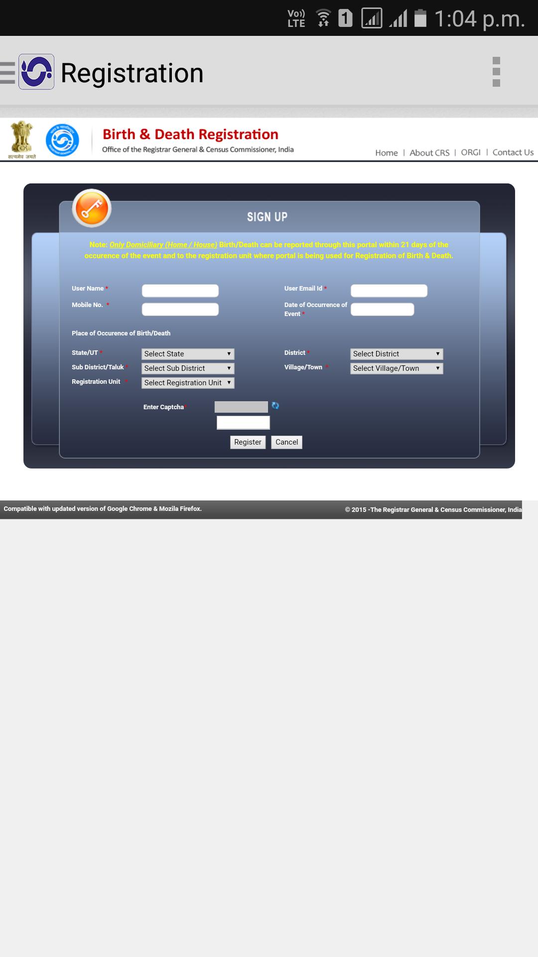 نظام التسجيل المدني (CRS) هو تطبيق للجوال على نظام Android لتسجيل أحداث الولادة والموت. تم تصميم وتطوير تطبيق CRS في المقام الأول للمسجلين والمسجلين الفرعيين الذين يعملون مع نظام CRS عبر الإنترنت ولديهم هواتف Smart Android. في عصر التكنولوجيا والعالم الرقمي ، يعد التنقل حقيقة بيئة عمل اليوم. تتمثل الفكرة وراء تطبيق CRS في إشراك وزيادة عدد التسجيلات مع نظام CRS عبر الإنترنت على منصة موحدة في جميع أنحاء البلاد