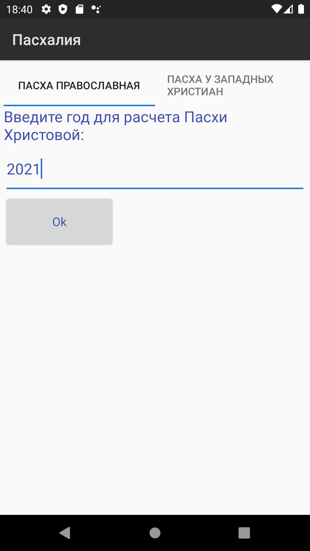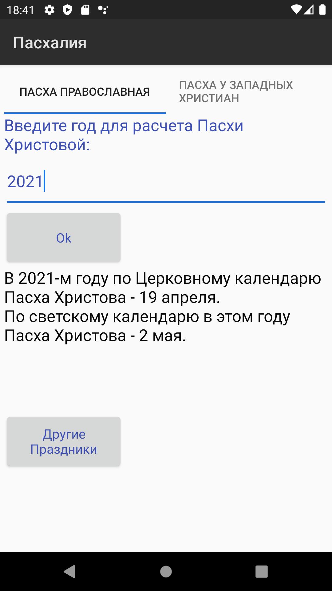 حساب تاريخ عيد الفصح باعتباره сhurches الأرثوذكسية والغربية ، باستخدام خوارزمية غاوس (التقويم الأرثوذكسي - جوليان) وسبنسر جونز (التقويم الغربي - غريغوريان).