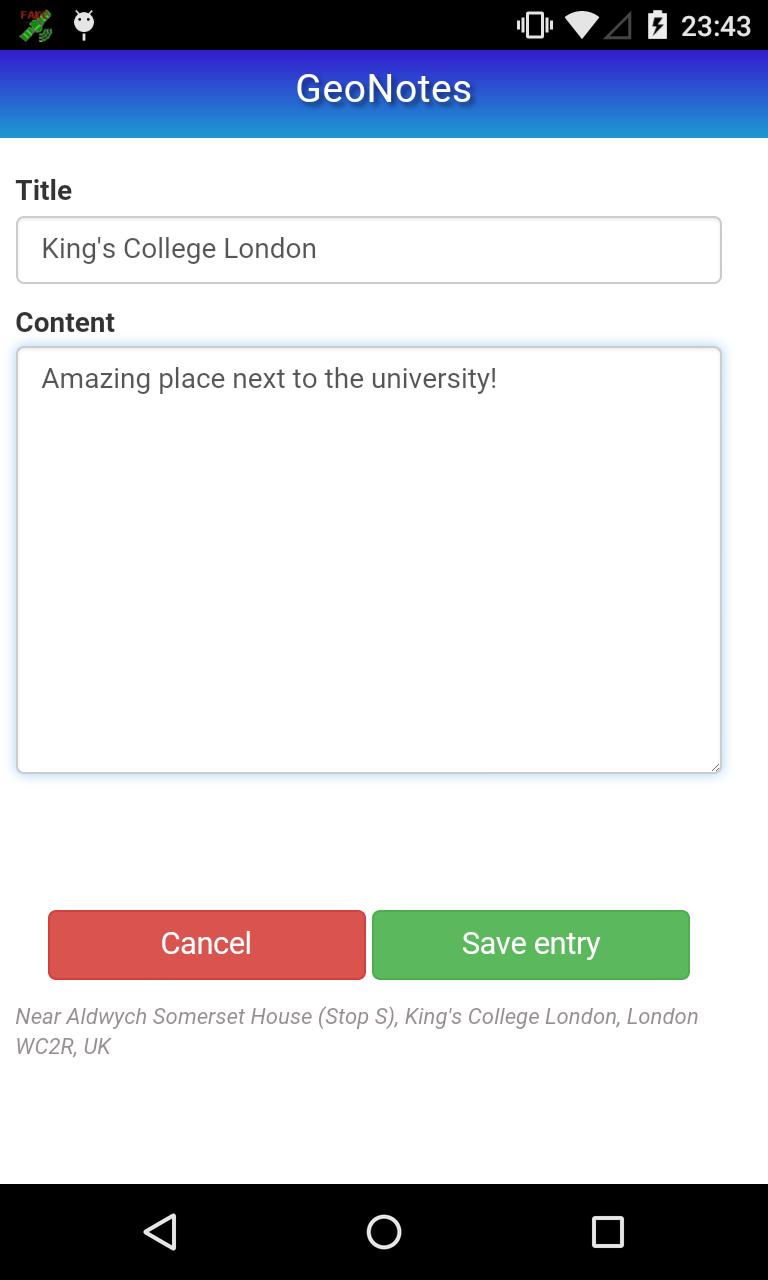 هل أردت يومًا أن يكون لديك تطبيق لتناول الملاحظات يتذكر المكان الذي قمت فيه بالفعل بتدوين هذه المذكرة؟ ثم GeoNotes هو الجديد الخاص بك يجب أن يكون لديك! ما عليك سوى إنشاء ملاحظة جديدة ، بعنوانها ومحتواه ، وسيقوم النظام تلقائيًا بإضافة الموقع الذي أنت فيه. هذا أمر رائع لتذكر الأماكن ، وتذكر مكان حدوث الأشياء ، أو كطريقة لتذكير نفسك حيث فكرت في فكرة رائعة!