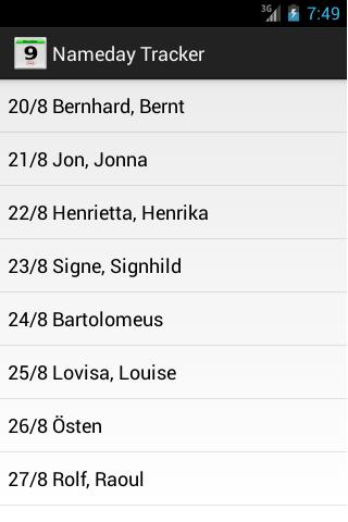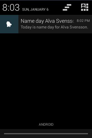 في الوقت الحاضر ، يدعم التطبيق أيام الاسم السويدية فقط. يمكن إضافة جنسيات أخرى لاحقًا إذا كان هناك ما يكفي من الاهتمام ، فهذا تطبيق مجاني والسويدي جيد بما يكفي بالنسبة لي.