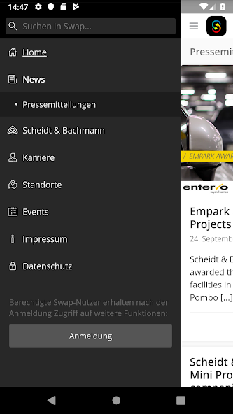 يستهدف المبادلة المتقدمين المحتملين والعملاء والموردين والموظفين. يُعلم هذا التطبيق عن أخبار الشركة ، وعروض الوظائف المفتوحة ويرشطك تقريبًا من خلال المواقع Mönchengladbach و Zillina و Bytca و Tunis of Scheidt & Bachmann. مع إشعارات الدفع ، لم تعد تفوت أي أبرز. تعرض خريطة الموقع التفاعلية فروعنا في جميع أنحاء العالم وتنتقل مباشرة إلى وجهتك.