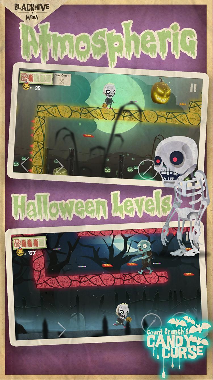 Count Crunch's Candy Curse ، وهو "منصة غير رسمية بحجم لدغة" حيث تلعب كـ "فتى عظمي" في ليلة عيد الهالوين في مغامرة مخيفة ومملوءة بالسلطة وترقص جانبي! بعد افتتاح صندوق من حبوب عيد الهالوين المسكون في Count Crunch للحصول على لعبة Halloween Playet الحرة ، لم يعلم Little Little Healgeon Boy أنه أطلق العنان لعنة الحلوى! الكونت Crunch يطلق العنان للوحوش المليئة بالحلوى على المدينة ، بالتأكيد تدمر عيد الهالوين وتولي في النهاية العالم! يجب أن يقاتل فتى الهيكل العظمي من خلال أربعة مناظر طبيعية مذهلة بصري في ليلة عيد الهالوين ؛ على طول الطريق لجمع الملصقات ، وفتح قدرات خاصة للمساعدة في إيقاف Count Crunch مرة واحدة وإلى الأبد!