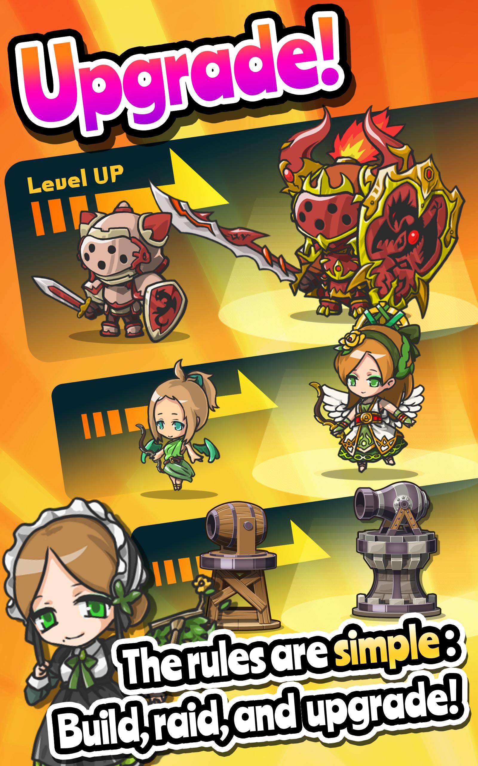 ● تطوير المباني في حصنك لزيادة منتجات الموارد ، وتوظيف المحاربين ، وممارسة المحاربين في أكاديمية حتى يكونوا أفضل ولديهم مجموعات وأسلحة أكثر جمالا.