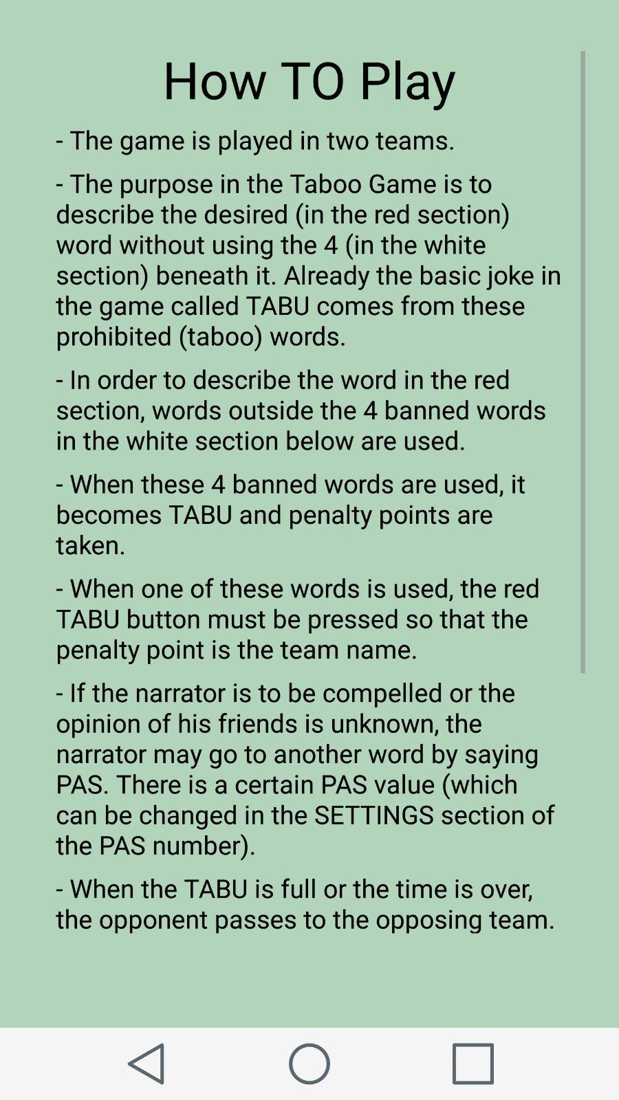 اللعبة في تنسيق "Tabu" الكلاسيكي.