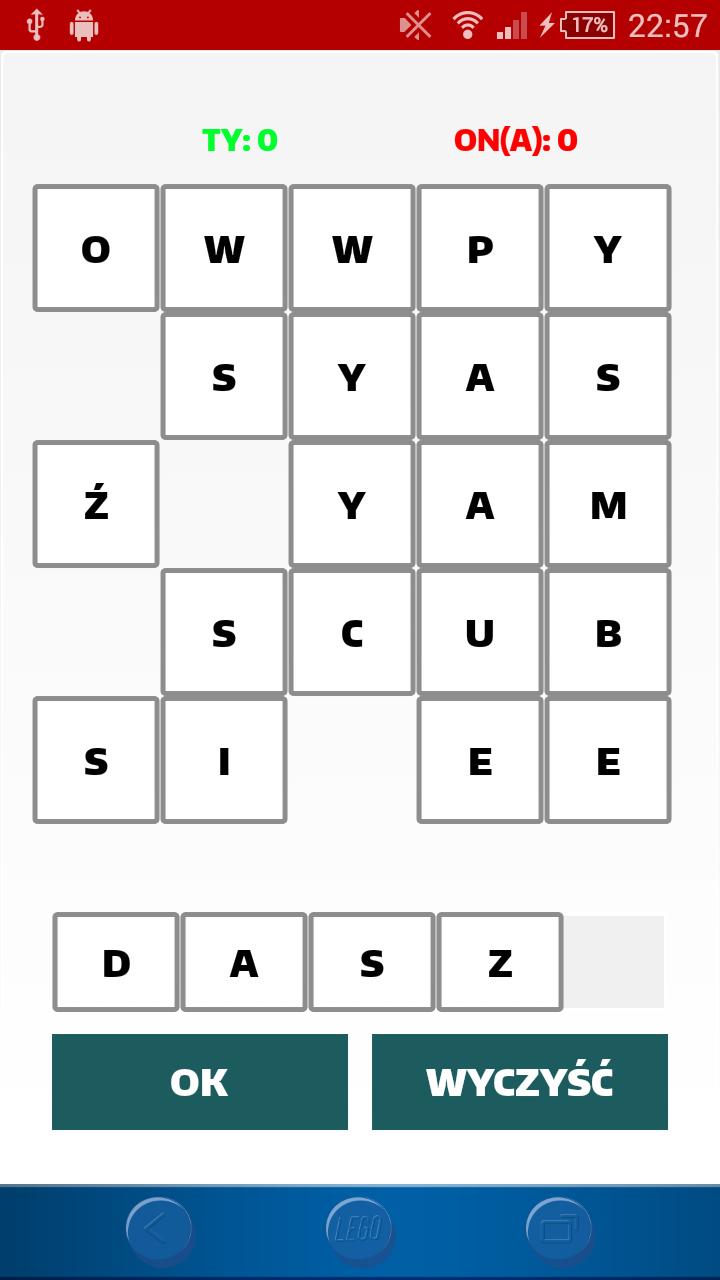 بعد البدء ، ترى 25 حرفًا تم تحديدها بشكل عشوائي. ضع الكلمة. يمكنك استخدام جميع الحروف. الرسائل التي تستخدمها ستغير اللون إلى الأخضر. ثم سيقوم الخصم بترتيب الكلمة وستغير Literki المستخدمة اللون إلى اللون الأحمر. تسير اللعبة على جميع Literki ستكون حمراء أو خضراء. الشخص الذي لديه المزيد من الرسائل في لونه يفوز.