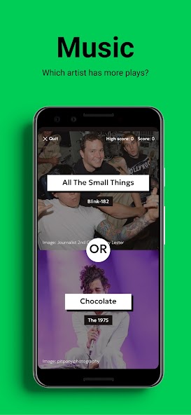 متعة أعلى أو أدنى من إحصائيات التوافه على مجموعة واسعة من الموضوعات بما في ذلك الأفلام ، Google ، الموسيقى ، الجغرافيا ، كرة القدم ، الدوري الاميركي للمحترفين وغيرها الكثير.