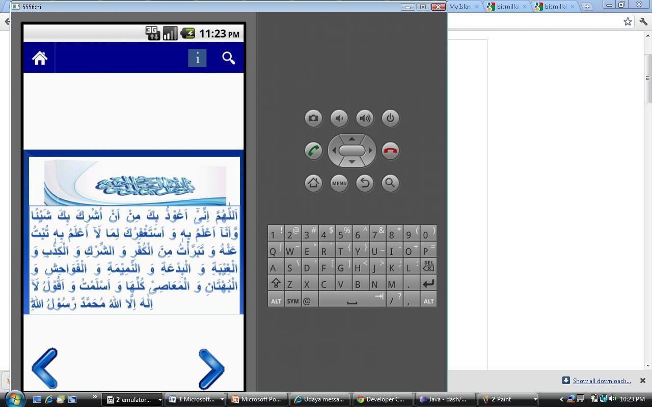 Dies ist die 3D -Ansicht der islamischen Kalma -eine Seite, die die arabische Sichtweise und die zweite Seite die Übersetzung in Englisch mit Rezitationsgeräusch geben.