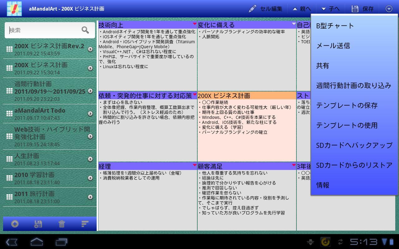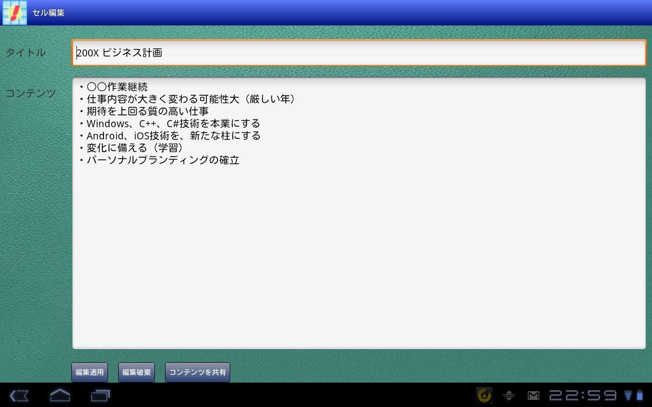 ● Mit der Sharing -Funktion können Sie die gesamten Mandala -Daten (OPML -Format) oder den Zellinhalt an eine App übergeben, mit der Textdaten wie Evernote akzeptiert werden können.
