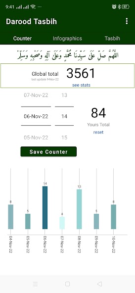 • Täglicher Rezitations -Tracker: Halten Sie eine Aufzeichnung Ihrer täglichen Darood -Rezitation auf, um in Ihrer spirituellen Praxis konsequent und motiviert zu bleiben.