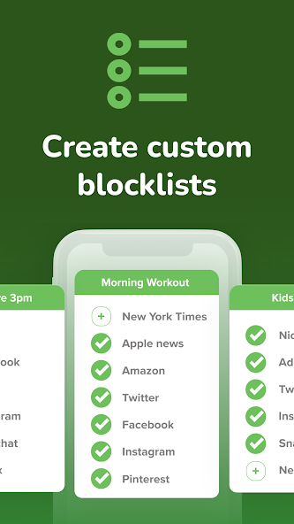 Wählen Sie die ablenkenden und zeitaufwändigen Apps und Websites aus, die Sie aus unseren Listen blockieren möchten, oder erstellen Sie Ihre benutzerdefinierte Blockliste. Blockieren Sie so viele Ablenkungen, wie Sie möchten, wann immer Sie möchten, so lange Sie möchten!