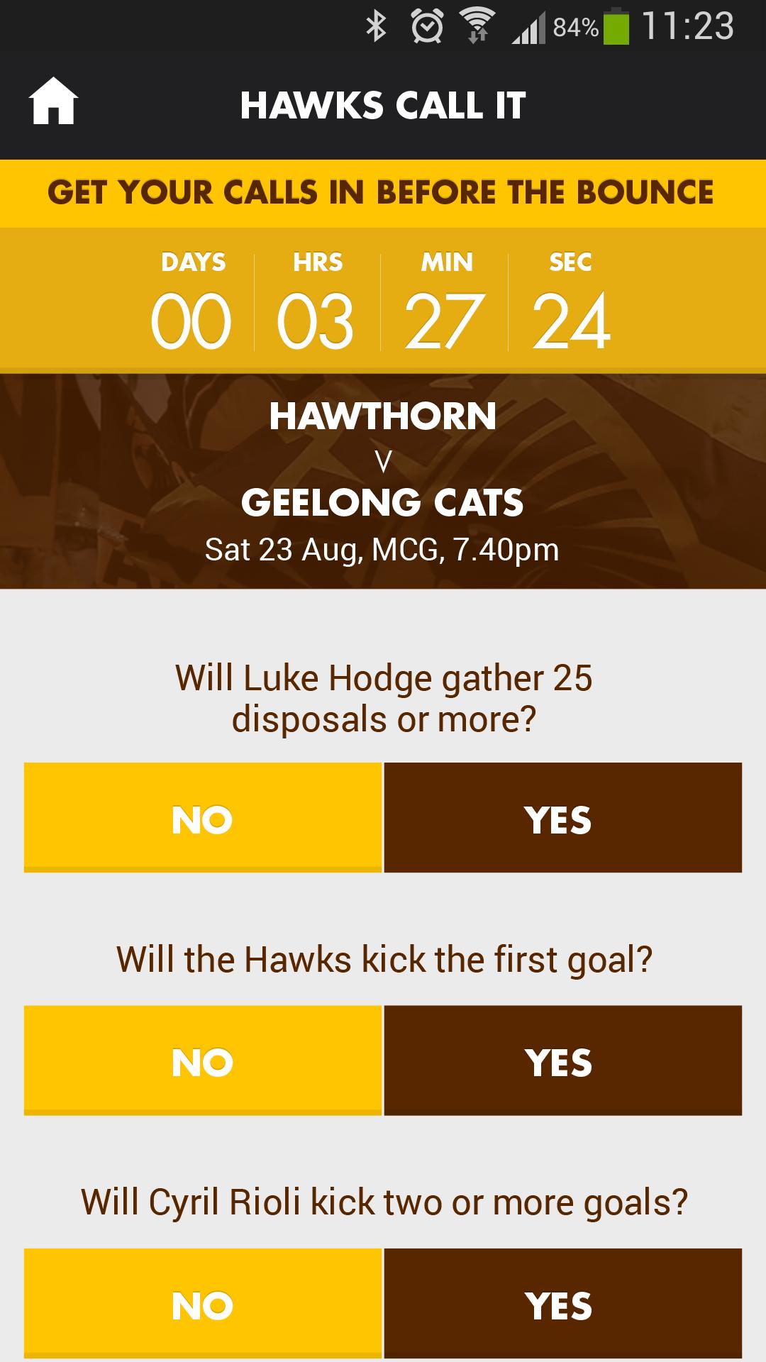 Hawks CALL IT ist ein Spiel, mit dem Sie Vorhersageanrufe für Fußballspiele tätigen können.