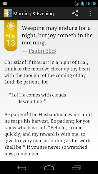 Diese Andacht von Charles Spurgeon hat eine morgendliche und abendliche Meditation für jeden Tag des Jahres. Obwohl diese Andachten kurz sind, sind sie voller spiritueller Güte. In nur wenigen Sätzen kann Spurgeon die Weisheit der Schrift mit Beredsamkeit und Zweck vermitteln. Diese täglichen Botschaften bieten Christen die spirituelle Energie, die sie brauchen, um jeden Tag zu beginnen und zu enden. Spurgeon webt einen Vers der Schrift in jede Hingabe ein und hilft den Lesern, aus den ausgewählten Passagen eine tiefere Bedeutung zu ziehen. Diese mächtige Andacht bietet Christen die geistige Nahrung, die erforderlich ist, um ihre Beziehungen zu Gott zu stärken. Die Leser werden sich von Morgen und Abend inspirieren: tägliche Lesungen.