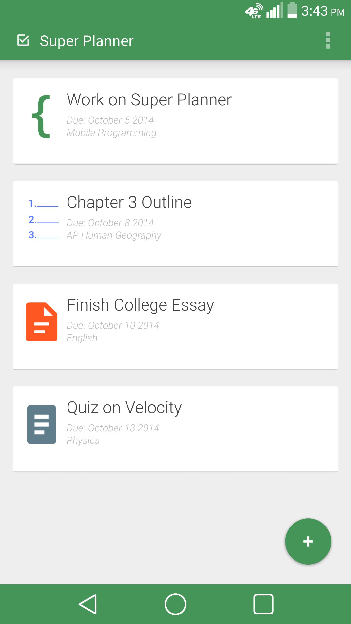 Super Planner verfügt über bis zu 8 anpassbare Klassen und verschiedene Arten von Aufgaben. Anschließend werden Zuordnungen in der Reihenfolge nach dem Fälligkeitsdatum hinzugefügt, um Ihnen einen schnellen und einfachen Einblick in das zu geben, was bald getan werden muss. Super Planner macht all dies ist ein elegantes Paket mit reibungslosen Animationen und soliden, starken Ikonen.