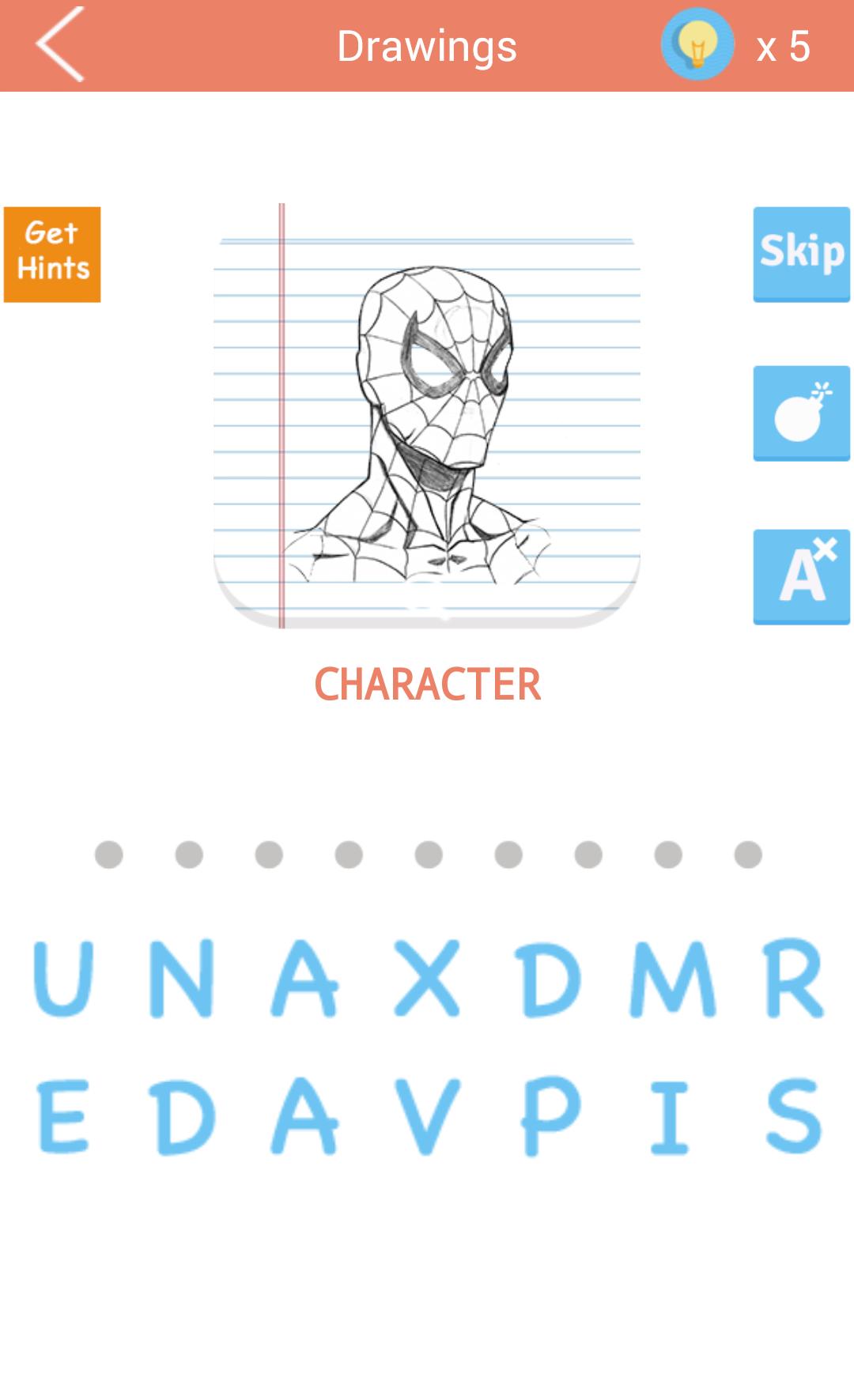 Das Konzept der Guess the Drawing Zeichenspiel ist sehr einfach: Versuchen Sie, den Namen des Charakters / Film- / TV -Show -Titels basierend auf einem Bleistift oder farbigen Zeichnungen zu erraten.