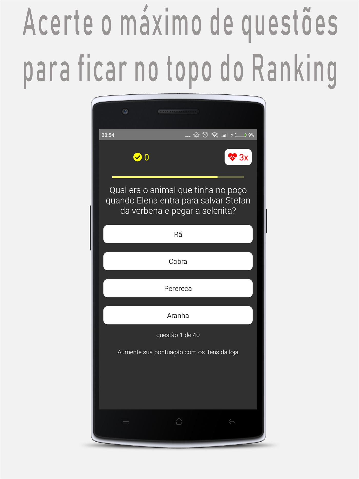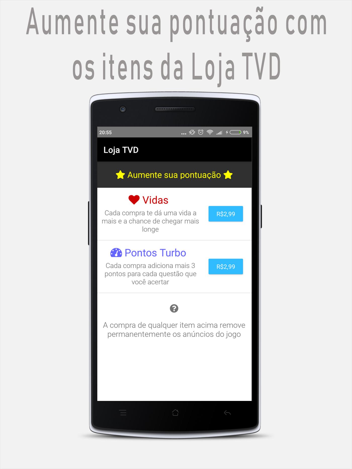 Mit über 10.000 Downloads ist es das kostenlose Spiel der Fragen und Antworten aus den Vampire Diaries oder einfach heruntergeladen und gut bewertet von TVD aus brasilianischem Google Play.