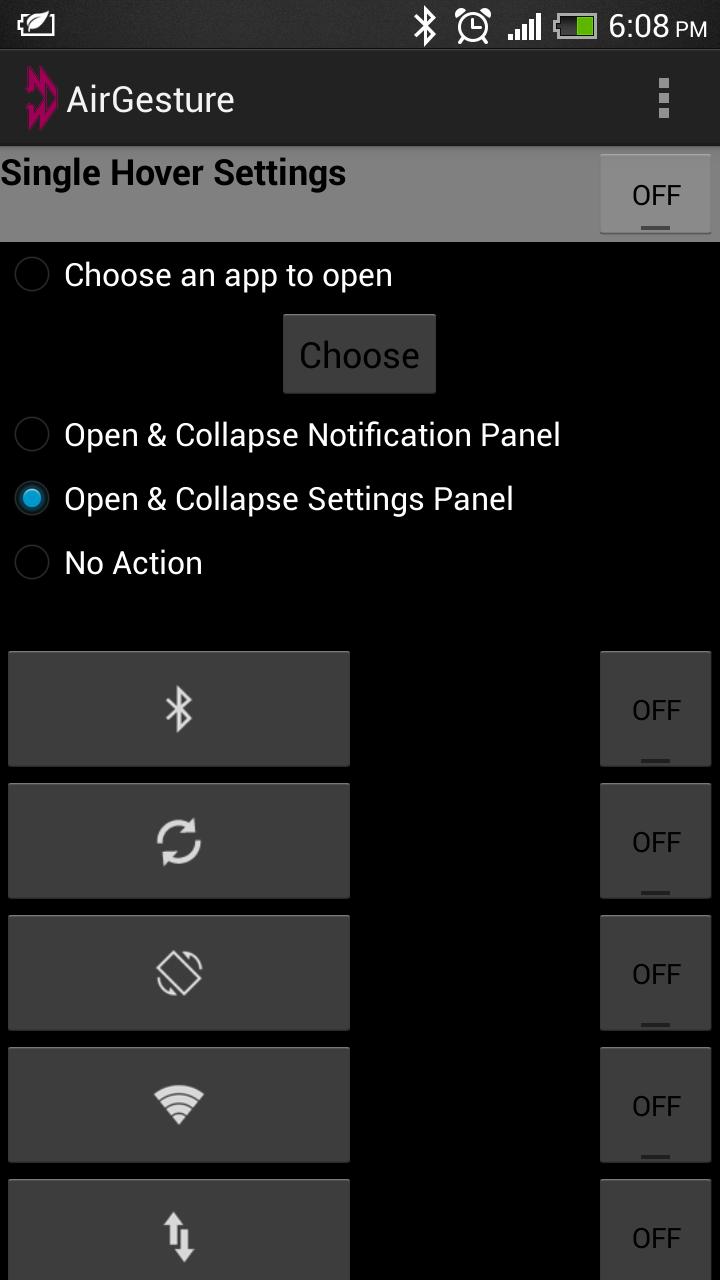 Alguna vez quise que su teléfono se comportara más inteligente que Samsung S4 con Air Gesture que le brindan un control completo sobre sus aplicaciones. No busque más, esta aplicación está hábilmente diseñada para que su mano hable con su teléfono inteligente sin siquiera tocarlo. Abra cualquier aplicación o el panel de notificación o el panel de configuración y muchos más utilizando esta aplicación. Además, incluso puede configurar esta aplicación para actuar para un gesto de doble desplazamiento y no solo un solo flotante. También puede hacer esta aplicación para responder a la llamada entrante o encender el altavoz simplemente haciendo un doble flotante. Diviértalo usando y avísame si quieres que se realicen alguna mejora además de esto.