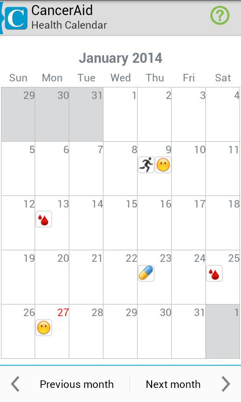 Si usted es paciente o cuidador de cáncer, el calendario de salud es una herramienta perfecta para registrar el duro viaje que trae el cáncer. Puede ayudarlo a realizar un seguimiento de:
