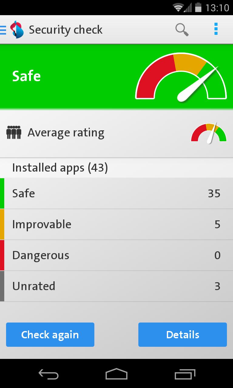 CheckAp es la aplicación ideal para administrar aplicaciones de manera controlada. Con CheckAp puede navegar por el fascinante mundo de las aplicaciones de manera consciente del riesgo. Puede verificar la confiabilidad de cada aplicación. CheckAp analiza la aplicación de acuerdo con los criterios de seguridad y emite una recomendación. De esta manera, puede proteger su teléfono inteligente de manera efectiva contra el robo de datos y la intrusión.